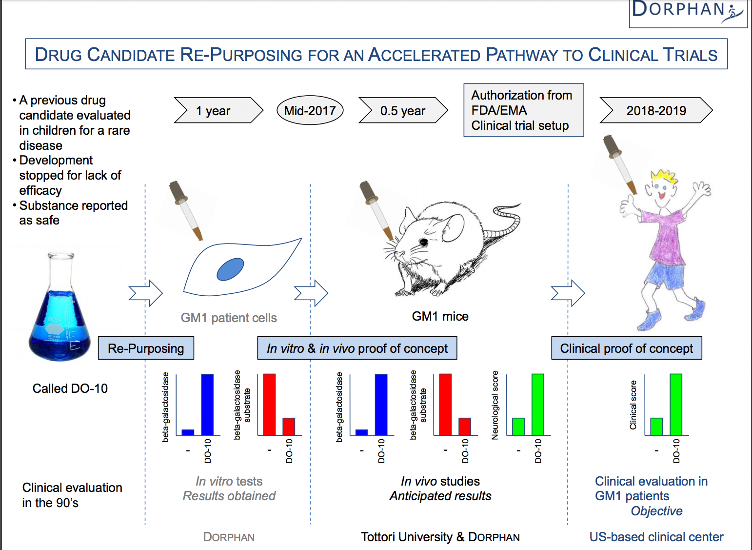 Cure GM1 granted funds for a drug repurposing project and mouse study to study a small molecule drug in collaboration with a small biotech company called Dorphan located in Switzerland.
