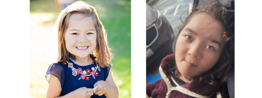 Left: Iris, age 5.5 at diagnosis; Right: Iris, age 18