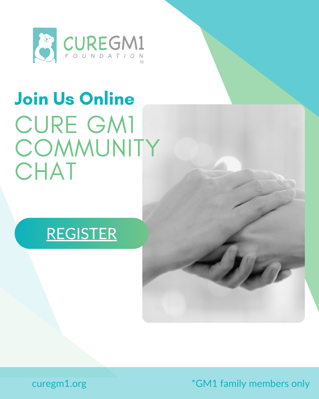 Our Community Chat for GM1 parents is a safe space to share your experiences and connect with other families living with GM1. This month’s Community Chat will take place Thursday, January 15, at 4 p.m. PST/7 p.m. EST. Click here to register.