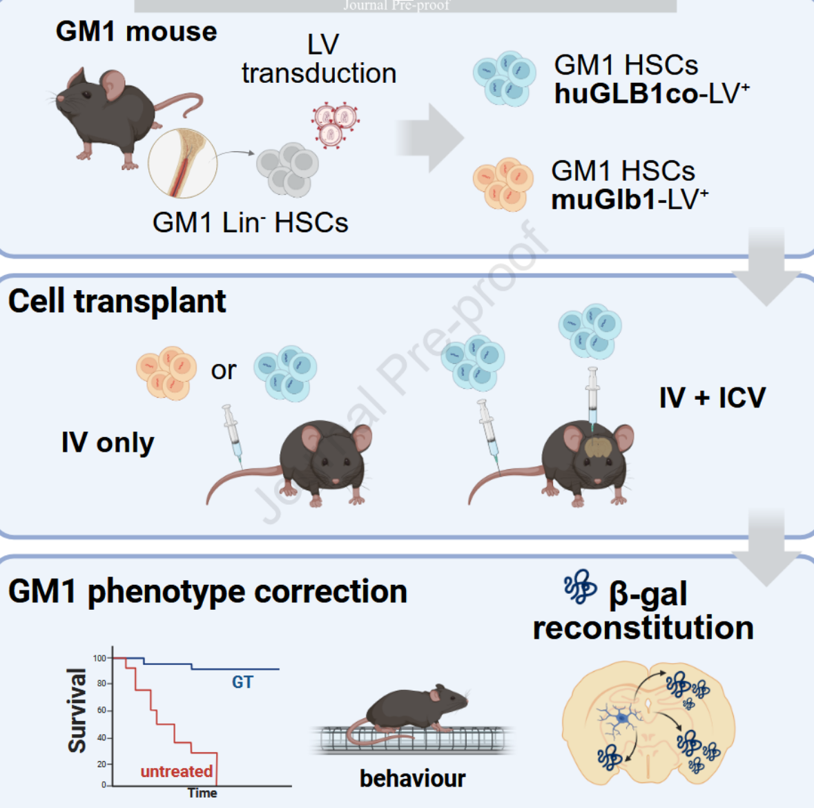 Researchers have recently completed a study that illustrates the use of Hematopoietic Stem Cell (HSC) gene therapy can improve the outcomes of mouse models with GM1. HSC gene therapy has already been proven effective in treating numerous lysosomal storage diseases, and in the recent GM1 study, it “broadly restored enzymatic activity and reduced the lysoosomal storage in the brain.” This, in turn, improved neuromuscular symptoms and overall animal survival.