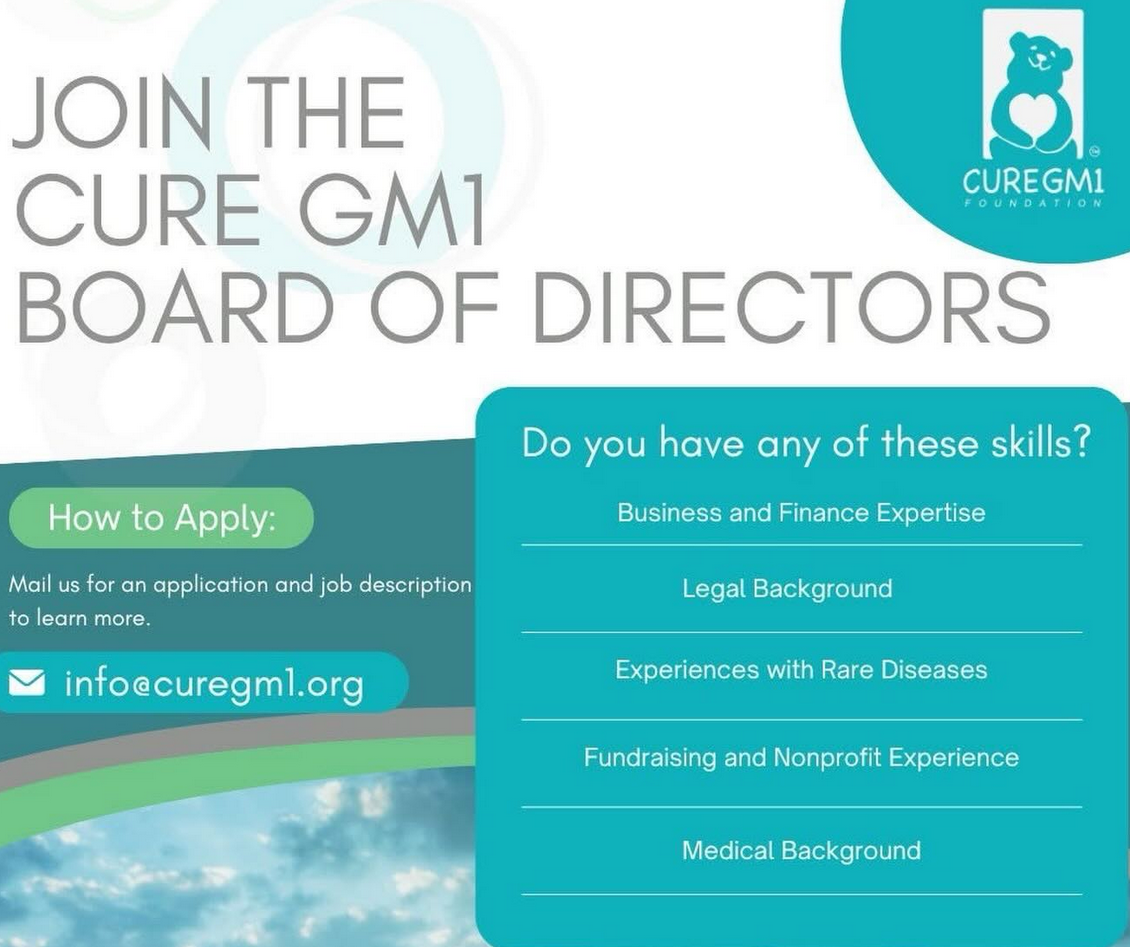 Cure GM1 is actively seeking dedicated individuals to join our Board of Directors in the new year. If you’re looking for a meaningful way to give back and help guide a mission-driven organization making real change, we’d love to hear from you. Learn more and apply by mailing info@curegm1.org for details.