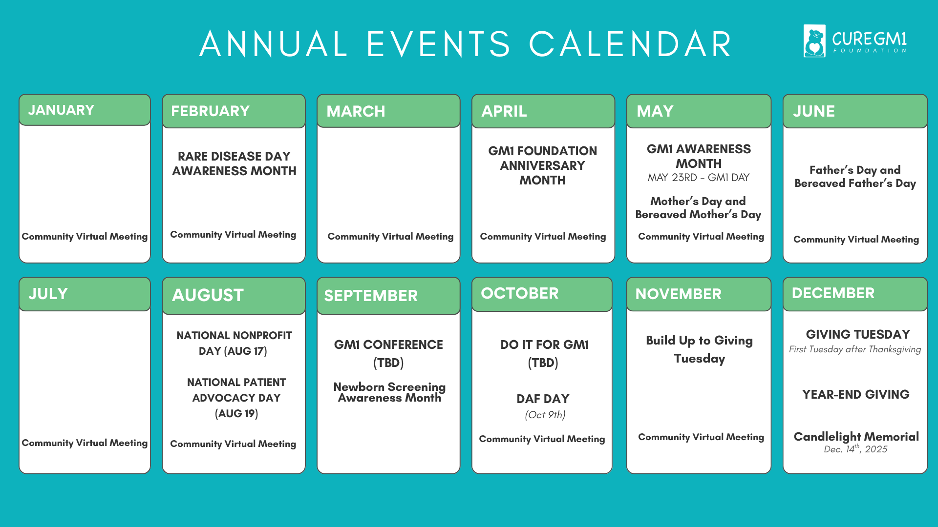 Join us throughout the year as we come together to support the GM1 community, raise awareness, and fund vital research.
