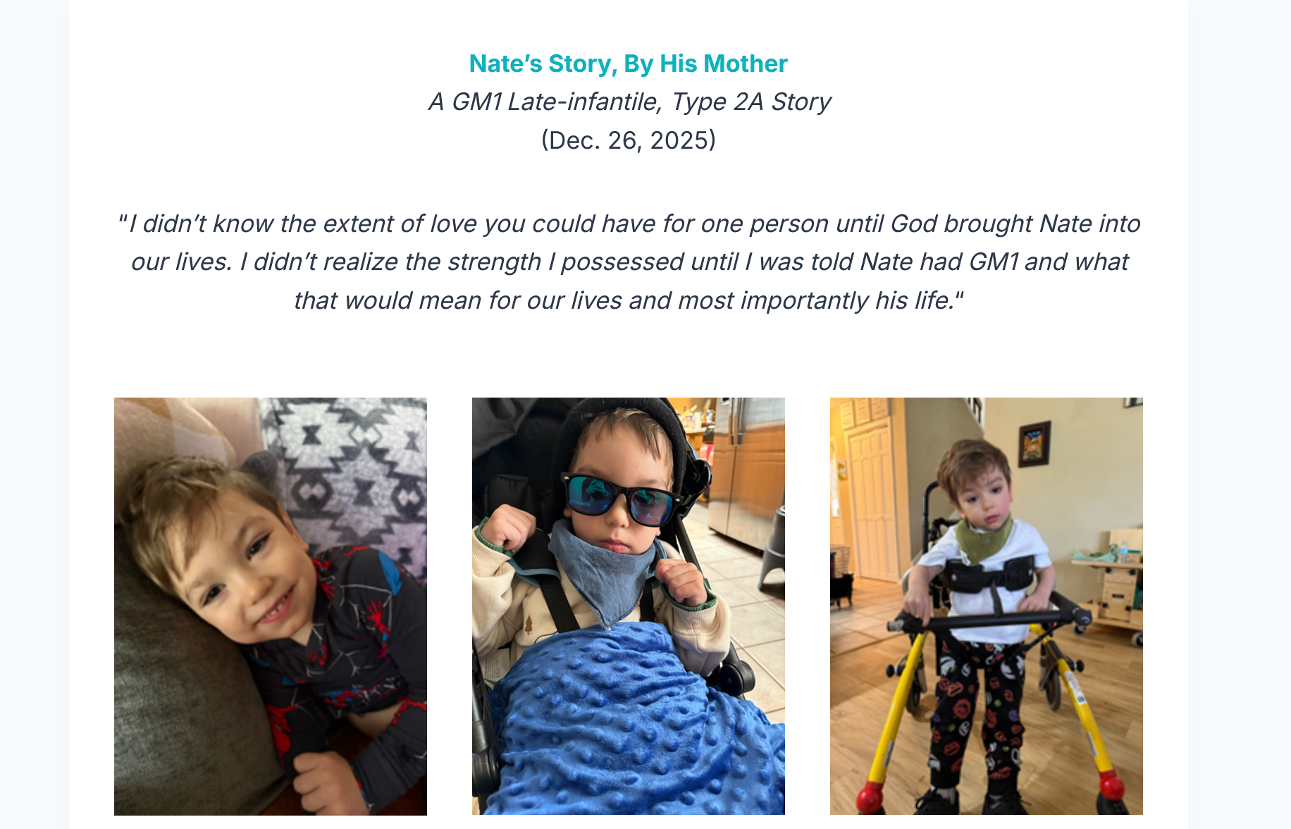 Send us quotes, stories, and photos of your family that we can use in social media posts and awareness campaigns. You can email them to us at jess@curegm1.org.