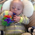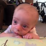 A few weeks ago Sage got sick and was throwing up and his oxygen levels went down into the low 80s. We found out he had bronchiolitis non-RSV. When he was throwing up I stopped giving him the Genistein because I thought that was why he was throwing up. It turns out he was throwing up because his hernia/hydroceles came back. So While he was not taking the Genistein I noticed he wasn’t holding his head up very well and was doing worse and worse during his early intervention therapy appointments. Well, since I started giving it to him again the past week he has been holding his head up like a champ! He is even doing better with tummy time and rolling over and sitting like a big boy all by himself! So, I am not entirely sure all the credit should go to Genistein but I don’t think it was a coincidence, his physical therapist even noticed a big change in him as well. Right now Sage is 4 months old and starting to eat carrots, peas, apples, and bananas. He’s having a very hard time with pushing up off the ground and holding his head up. But he’s a great story teller and has a smile that could light up the room! He has brought our entire community together. I hope to give him the best possible life I can give him while I have him! If you want to follow baby Sage’s progress with GM1 our Facebook page is Genistein For Baby Sage
