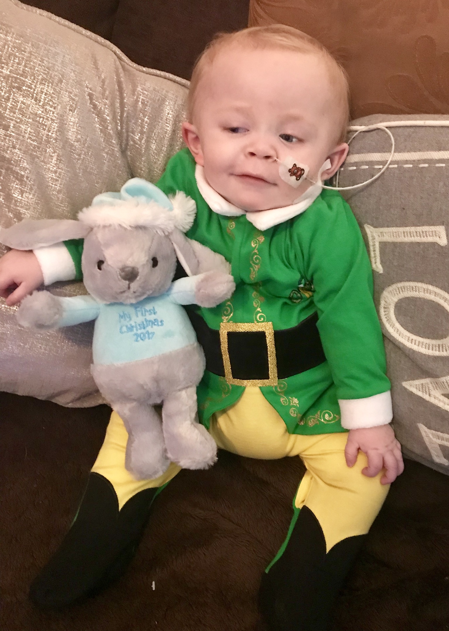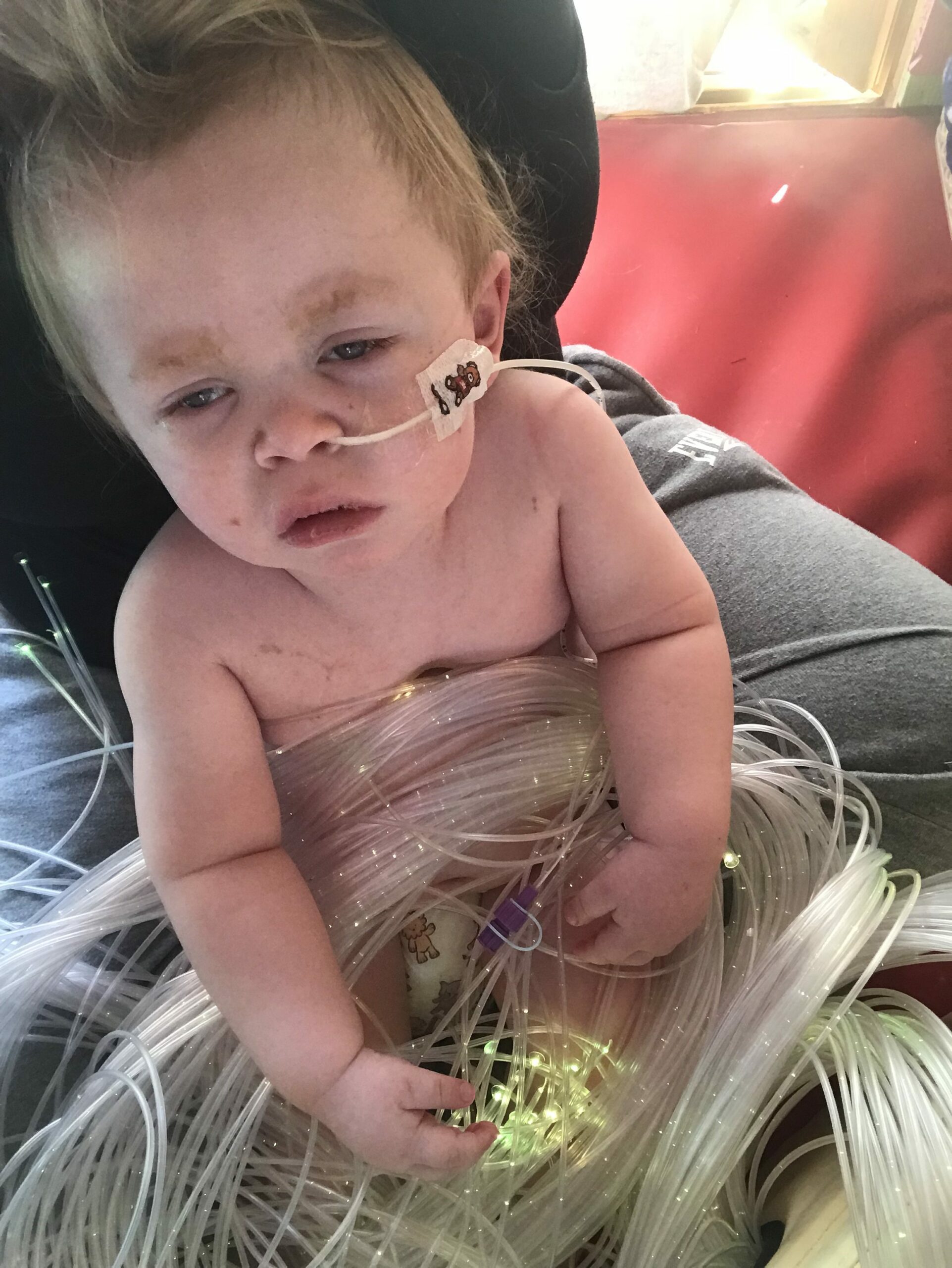 In these images, T-Jay is nearly 18 months old. He was diagnosed with GM1 Type 1 /Infantile, 3 weeks before Xmas 2017. It’s been a rocky road with emotions. T-Jay is a happy little boy. He can’t walk his muscles are very weak. He has started to deteriorate as in his fits have started getting worse and he stops with his breathing sometimes. He is on oxygen.
